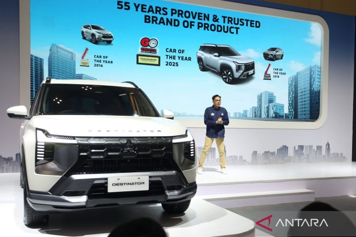 Director of Sales dan Marketing Division PT Mitsubishi Motors Krama Yudha Sales Indonesia (MMKSI) Irwan Kuncoro mengumumkan penghargaan yang diraih Mitsubishi Destinator diajang pameran otomotif GAIKINDO Jakarta Auto Week 2025 di Indonesia Convention Exhibition (ICE) Kabupaten Tangerang, Banten, Jumat (21/11/2025). Mitsubishi Motors Corporation mengumumkan bahwa Mitsubishi Destinator meraih peringkat tertinggi bintang lima dalam ASEAN NCAP 2025, sebuah program penilaian kinerja keselamatan komprehensif untuk kendaraan baru di kawasan ASEAN serta meraih Car of the Year 2025 dan The Best Medium SUV diajang GridOto Award 2025. ANTARA FOTO/Muhammad Iqbal/nz